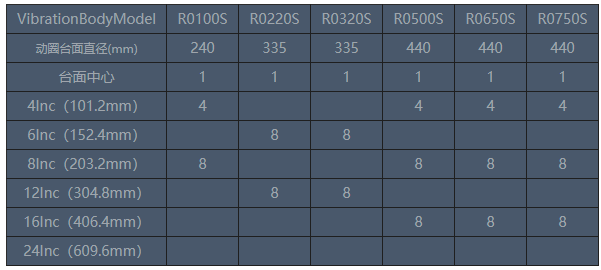 圓形擴展臺具有良好的頻響特性,其臺面螺釘分布符合上表標注尺寸。